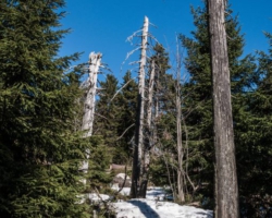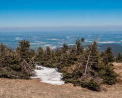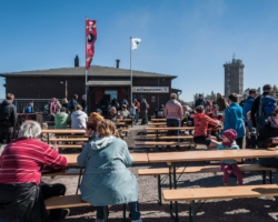 The weather was just great, sunny and warm. Yet the further up I climbed, the more Faust’s introductory lines from the “Osterspaziergang” (see below) turned out to be true: winter had not ceased to exist, winter had moved upwards. As I got near the summit, I realized that there was snow, and that my short was rather light. The Brocken as an average temperature of a chilling 2.5°C, and in the almost stormy winds the temperature must have been not far from that.